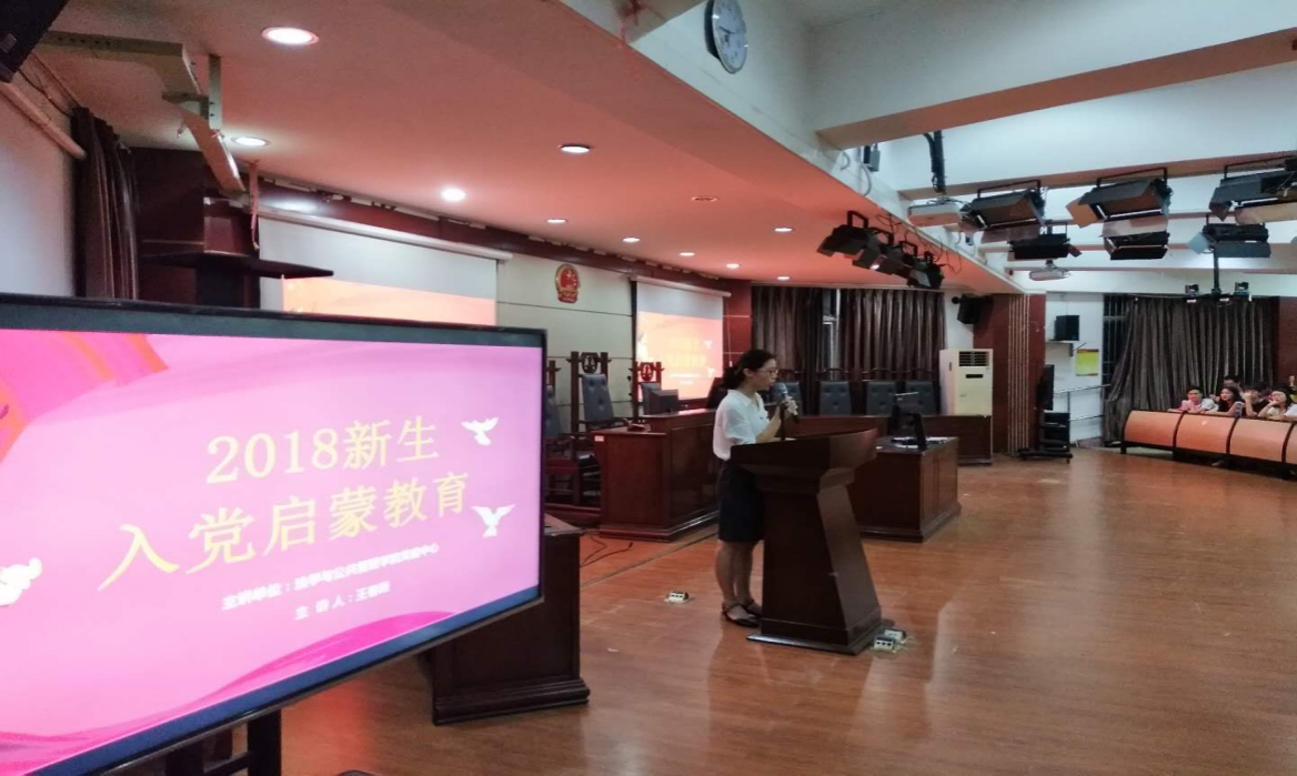 为提高新生对中国共产党的认识,鼓励新生积极向党组织靠拢,法学与公共管理学院于9月16日晚上在博西梯教二举行了“2018级新生入党启蒙教育”,由学院党委组织员王春燕老师和党建中心主任主讲。