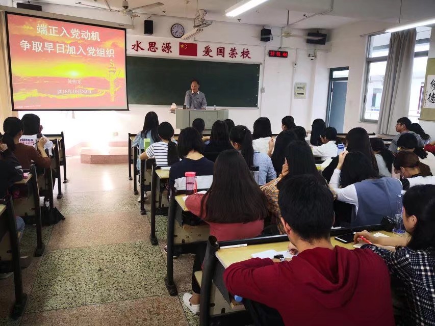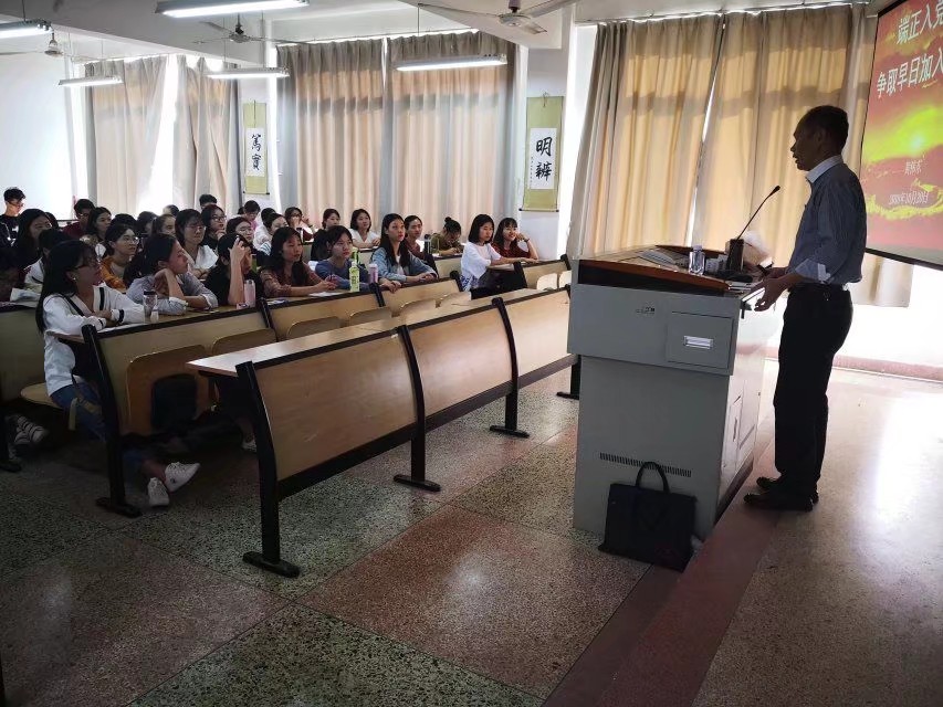 黄伟东老师围绕着如何“树立正确的入党动机”这一主题,从“谷文昌精神”谈起,结合介绍中国共产党的性质、十九大提出的新思想等,提出了入党唯一正确的动机,也就是共产党人的初心和使命——“为中国人民谋幸福,为中华民族谋复兴”。如何端正入党动机?黄老师认为最重要的是认真学习党章和党的基本知识,其次要积极参加实践锻炼,从中不断自我总结提升。