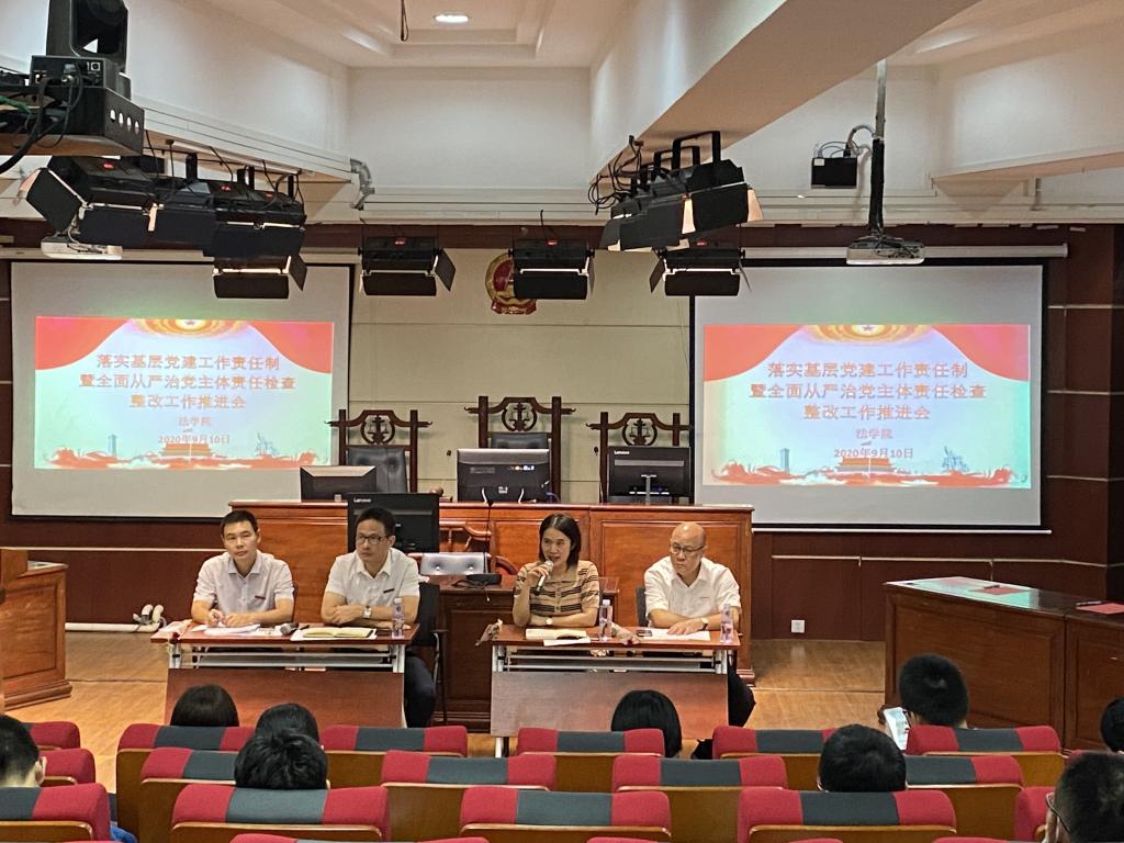 9月10日下午,我博西梯教二召开落实基层党建工作责任制暨全面从严治党主体责任检查整改工作推进会。院党委书记徐继红,院党委副书记、院长何东平,院党委副书记、纪委书记潘艺阳,院党委委员、副院长黄耀明出席会议。全体教职工参加会议。会议由潘艺阳主持。