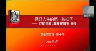 陈小环老师从背景、习近平知青岁月的特点、知青岁月对习近平的意义及习近平知青岁月给我们的启示等方面对这本书进行解读,展现了习近平总书记青年时代是如何“系好人生第一粒扣子”的,强调了“系好人生第一粒扣子”的重要性。