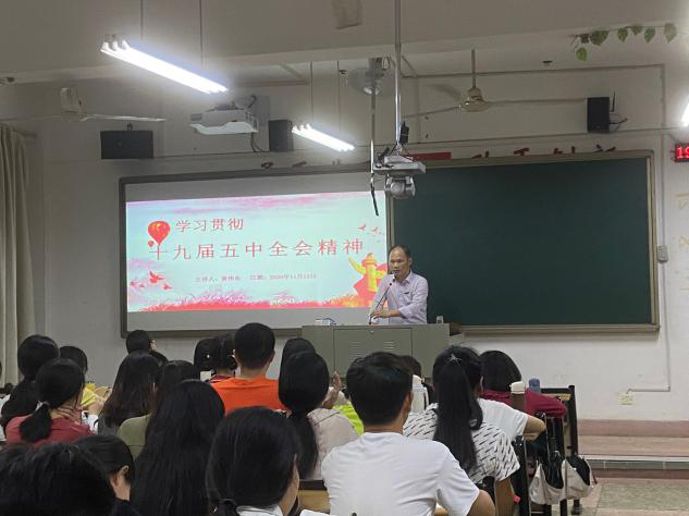 开班典礼结束后,商学院党委书记黄伟东副教授带来培训班的第一堂课《弘扬十九届五中全会精神》。黄老师从历史角度、发展环境、理论意义、历史进程、工作指导等五个方面引导学院理解和把握十九届五中全会精神和十四五规划建议的重要意义,并给学员们提出两点建议:一是积极分子该有更高的政治站位;二是严于待己,起积极作用,全面发展德智体美劳。他指出学习党的基本知识、党的历史、党的优良传统,是锤炼党性的重要举措,希望大家珍惜这次学习机会,集中精力学习,力求思想境界有提升、理论水平有提高、能力素质有增强,取得实实在在的效果。随后祝贺风车动漫p