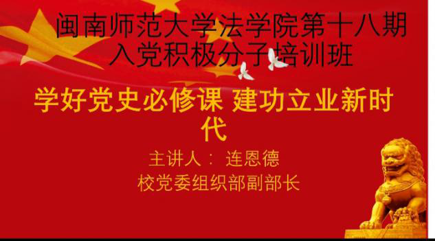 11月28日8点30分,校党委组织部副部长连恩德老师为第18期入党积极分子培训班学员讲授《学好党史必修课 建功立业新时代》的党课。