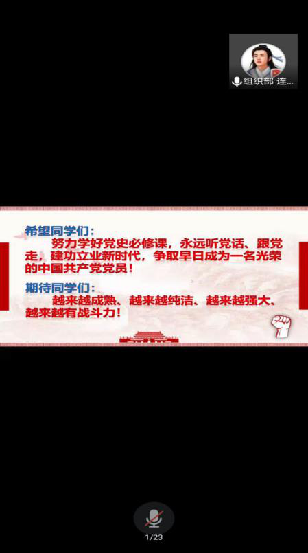 在最后,连恩德老师给予学员们建议和鼓励,希望学员们努力学好党史必修课,永远听党话,跟党走,建功立业新时代,争取早日成为一名光荣的中国共产党党员。