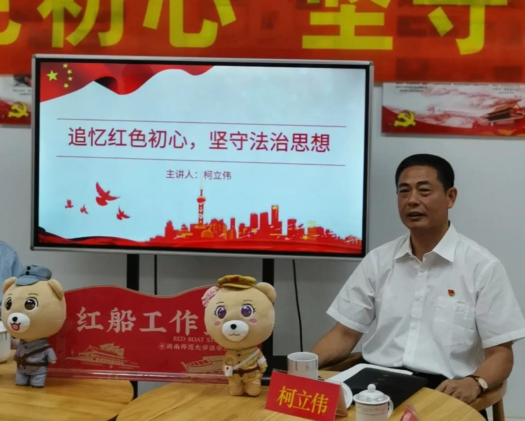 客座教授柯立伟老师为大家作了《追忆红色初心,坚守法治思想》的党课并向大家讲述了他所知道的英雄柯联魁的一些事迹。