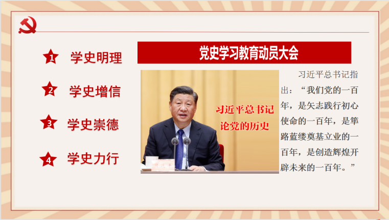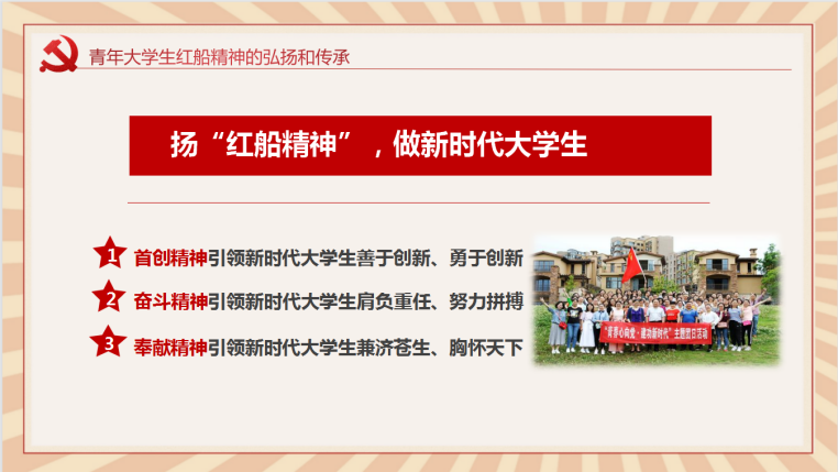 党史学习教育活动的情况,以“红船精神”的历史背景为线索,介绍了“红船精神”的深刻内涵,引导学员们思考:红船精神对于当代大学生有何启示以及当代大学生应该如何践行红船精神等问题,并号召学员要积极学习“红船精神”,努力将“红船精神”传承下去,努力在新时代做出青年大学生该做的贡献,为实现中华民族伟大复兴的中国梦努力奋斗。