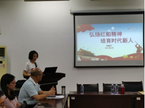 徐书记为大家介绍到,2005年6月21日习近平总书记在《弘扬“红船精神”走在时代前列》中首次提出“红船精神”一词,并阐释了“红船精神”是一种“开天辟地、敢为人先的首创精神,坚定理想、百折不挠的奋斗精神,立党为公、忠诚为民的奉献精神”。接着,徐书记详细介绍了学院红船工作室的建设情况。