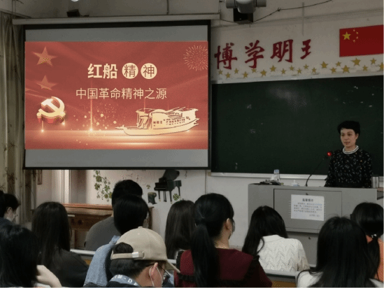 开班式结束后,学院党委副书记陈越老师以“红船精神-中国革命之源”为主题,对学员们开展了第一次党课教育。