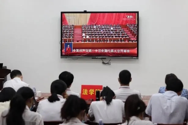 各位领导、老师和同学们一起收看党的二十大开幕会。党的二十大是在全党全国各族人民迈上全面建设社会主义现代化国家新征程、向第二个百年奋斗目标进军的关键时刻召开的一次十分重要的大会。