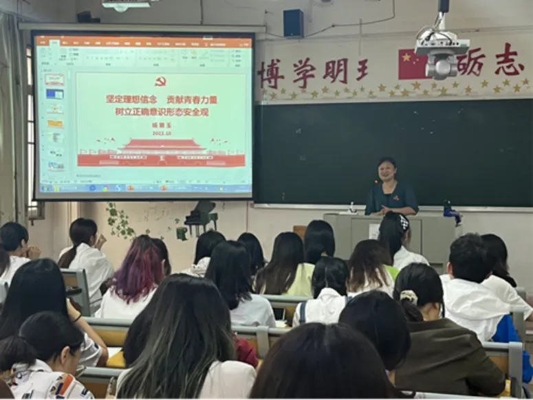 随后,教育科学学院党委副书记杨君玉老师讲授“坚定理想信念、贡献青春力量,树立正确意识形态安全观”为主题的党课。
