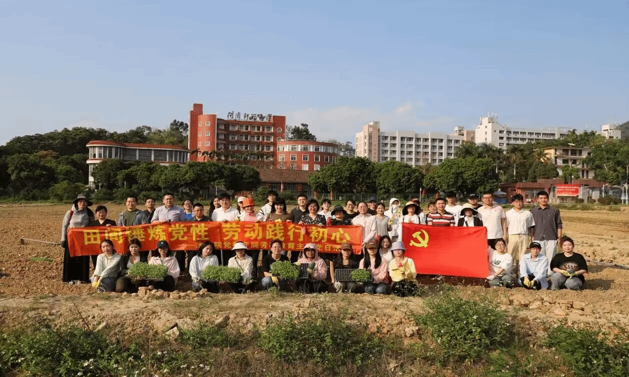 党委组织学院党员师生代表,前往圆山校区劳动实践教育基地开展“田间锤炼党性,劳动践行初心”主题党日活动,学院劳动课任课教师代表、学生干部代表等一同参加。