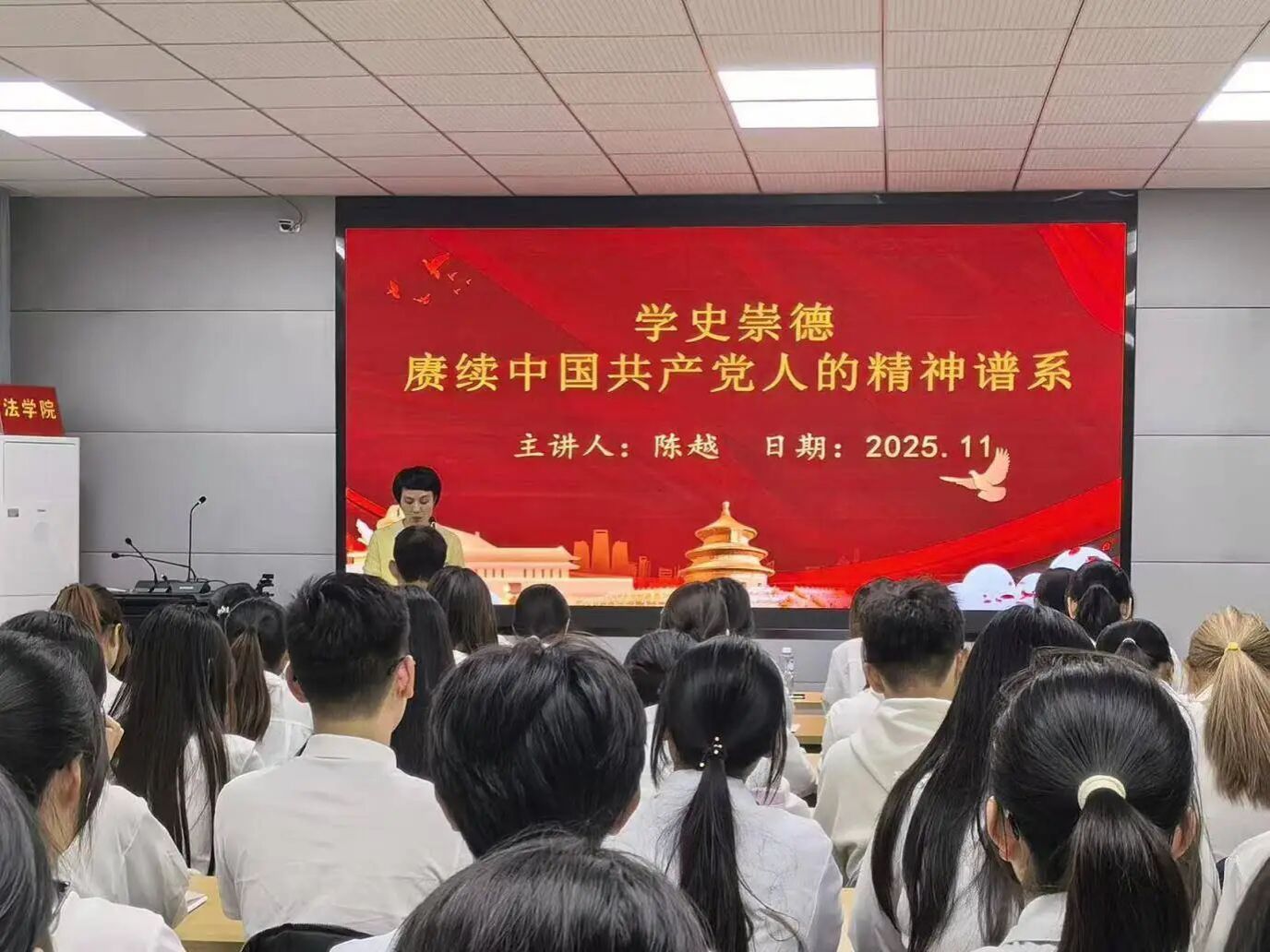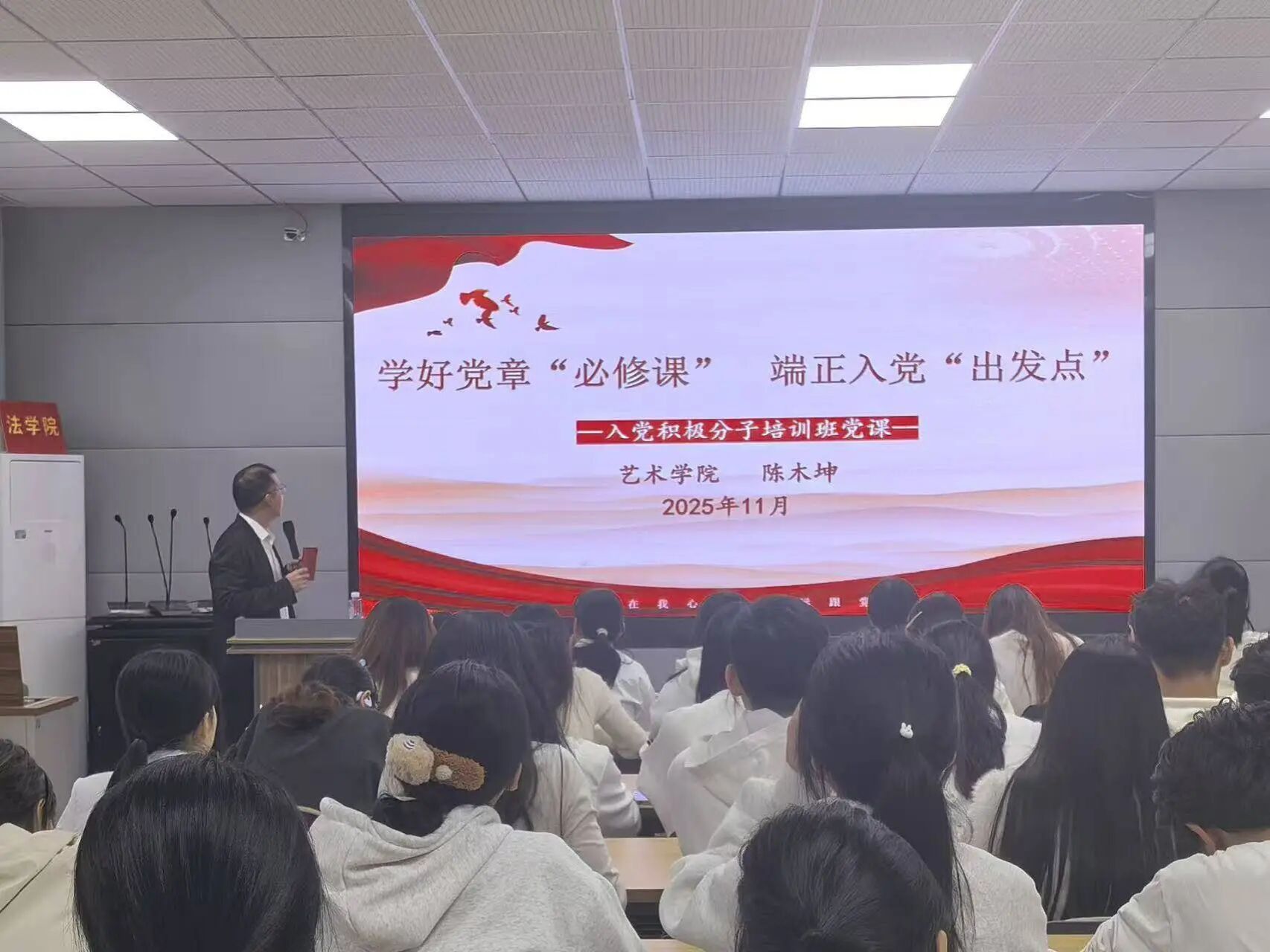 院党委书记、分党校校长陈越为优秀学员颁发荣誉证书,并向全体顺利结业的学员表示祝贺。她在总结讲话中对学员们提出三点期望:一要以理论淬炼思想根基。思想上的坚定根植于理论上的清醒,学习是一场永不停歇的修行,新时代入党积极分子更应扎实理论学习做到学深悟透、知行合一,让学习成果切实转化为实践能力。二要以初心筑牢信仰之基。作为入党积极分子,要时常自我鞭策,在日常中谨言慎行,强化纪律意识与风险防范意识,始终保持清醒的政治头脑和昂扬的奋斗姿态。坚守初心,站稳政治立场、把准政治方向。三要以担当彰显青年本色。新时代赋予青年新的使命,唯有主动担当、积极作为,才能不负时代、不负人民。青年学子应立足本职岗位,在急难险重任务前挺身而出,在平凡日常中履职尽责,以实际行动诠释青年入党积极分子的责任与使命。