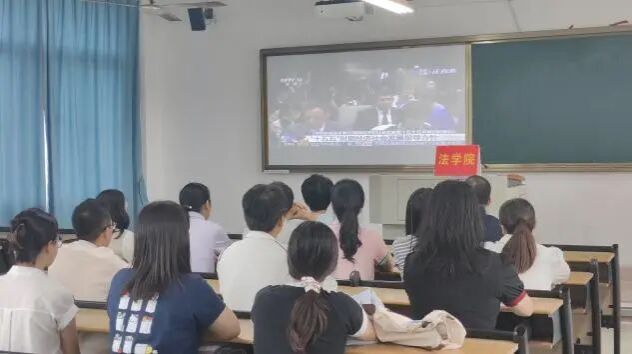 党委组织师生代表在博文楼西区510教室集中收看党的二十届四中全会新闻发布会直播,深刻学习领会全会精神。
