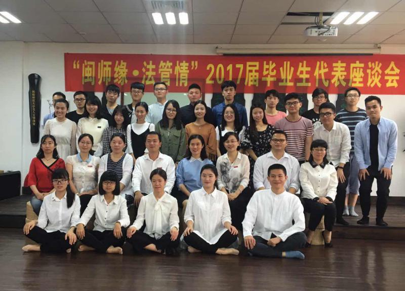 4月16日上午,“闽师缘·法管情”2017届毕业生代表座谈会在博文楼东区406古琴教室举办。法学与公共管理学院党委副书记徐继红出席活动,全院政工干部及毕业生代表参加了此次活动。