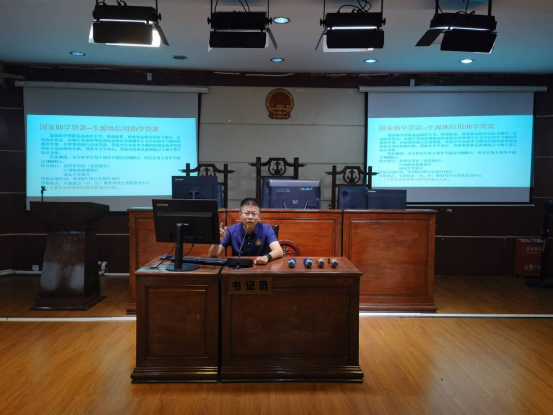学生处学生资助管理科副科长汪先平为本硕新生作资助政策讲解,他从奖、助、贷三个方面讲解了学校资助的相关政策,并进行了感恩教育,让新生对于资助工作有了更加清晰的认知。