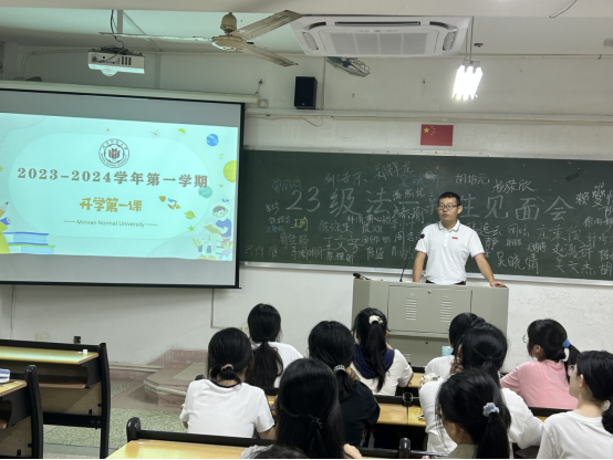 学院还邀请芗城区人民检察院党组书记、检察长郭荣龙为新生作安全教育,郭荣龙检察长以具体案例为同学们讲解了防诈反诈的相关知识,并结合近期国际时政热点,为同学们作了一堂生动的爱国主义教育课。