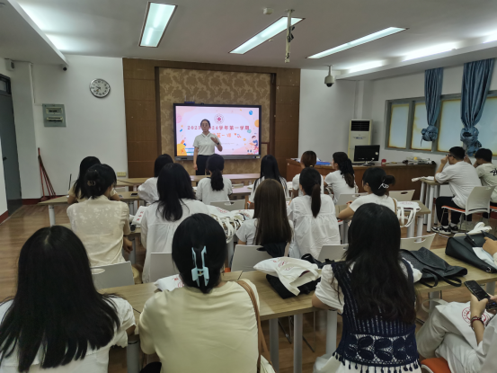 新生班会上,新生辅导员郑高薇老师、吴宇轩老师为新生作校史校情讲解,吴老师从建校六十五周年出发,为新生们讲解了学校筚路蓝缕的发展历程,并鼓励同学们发扬学校“艰苦奋斗、自强不息、攻坚克难、敢拼会赢”的办学优良传统,成为德智体美劳全面发展的新时代好青年。