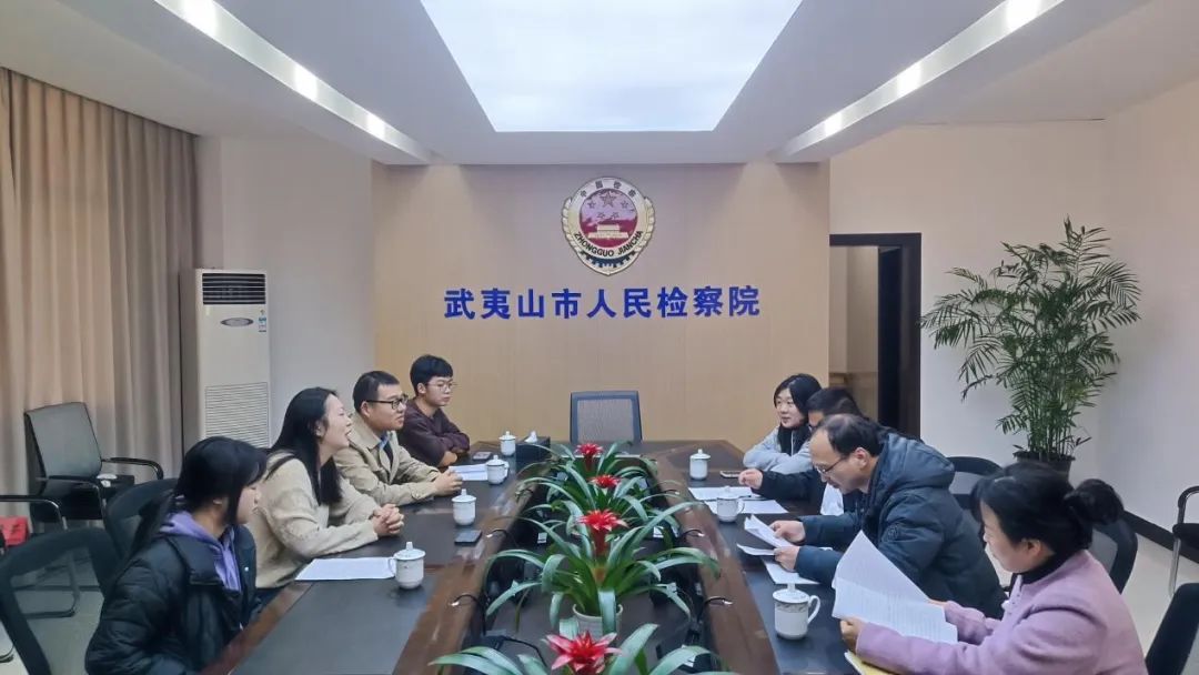 团委书记邢舒惠带领院寒假社会实践队前往武夷山市人民检察院交流调研,武夷山市人民检察院党组成员、副检察长刘德明、院党组成员、纪检监察组组长黄亨营出席座谈会。