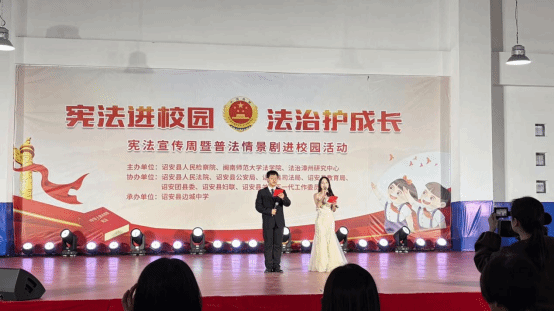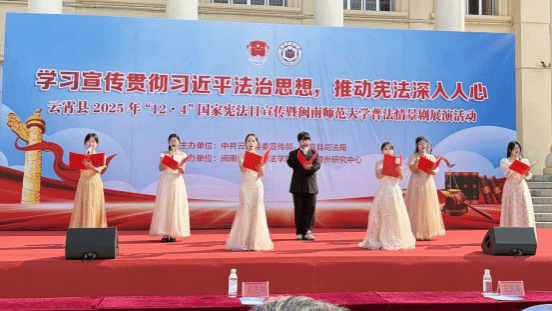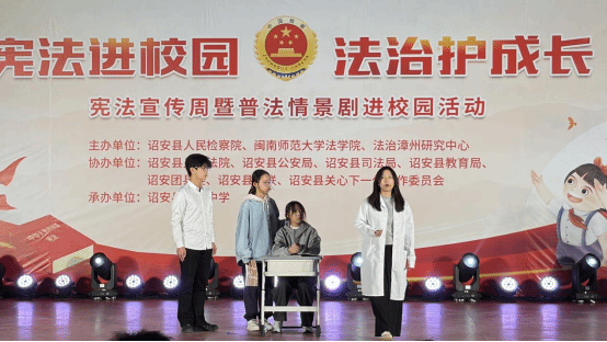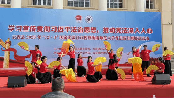师生赴漳州市云霄县人民公园与诏安县边城中学两地开展普法情景剧展演活动。