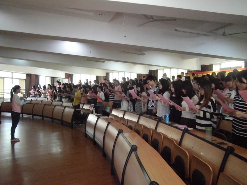 在博西梯二教室举行“律己正风、勤学善思”学风建设承诺仪式。学院党总支林贵东副书记,团委许晓玲副书记、全体学生党员、B类以上学生干部出席了活动,大会由学院党总支秘书郑少茹老师主持。