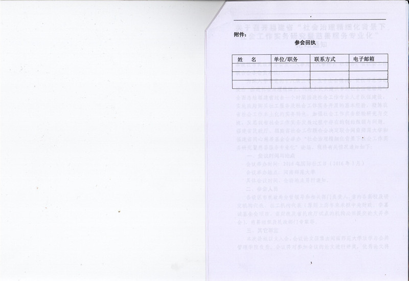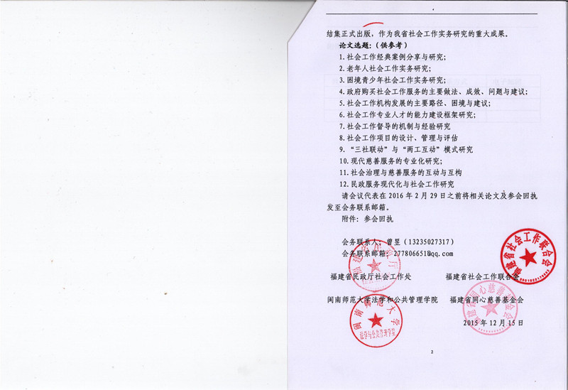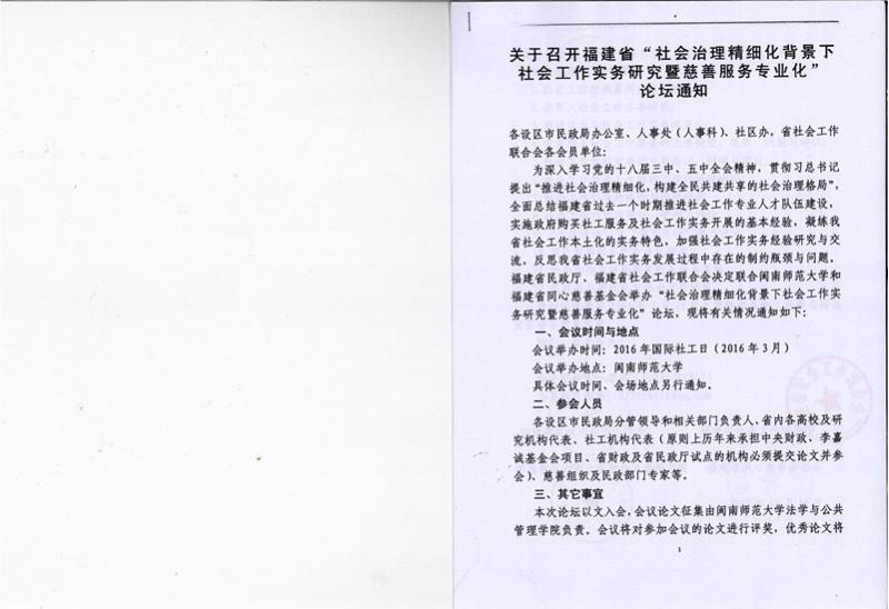 关于召开福建省“社会治理精细化背景下社会工作实务研究暨慈善服务专业化”论坛通知