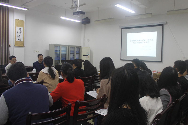 12月13日,华东政法大学政治学与公共管理学院博士生导师姚尚建教授应邀在博西106会议室为法学与公共管理学院学生做题为“城市研究的基本框架:政治学与公共管理学院的视野”的学术讲座。