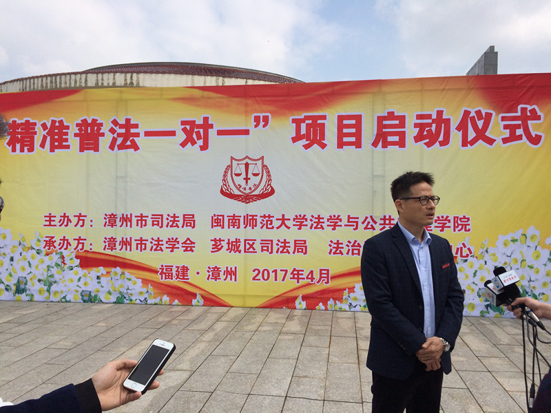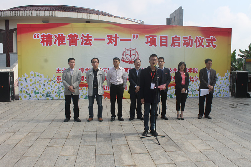 启动仪式上,漳州市司法局局长林方指出,“精准普法一对一”项目是通过“一对一”结对子普法方式,实现灌输式普法向私人订制普法的转变,通过地方与高校合作精准开展农村法律服务,进一步提高基层法治意识,构建良好的社会治安,形成浓厚的地区法治文化氛围。何东平院长宣读了“精准普法一对一”志愿者人员名单,同时他希望精准普法志愿服务队能沉心静气,立足农村实际,以饱满的热情、充实的精力,做出实实在在的成绩,为漳州市基层法治建设贡献一份力量。
