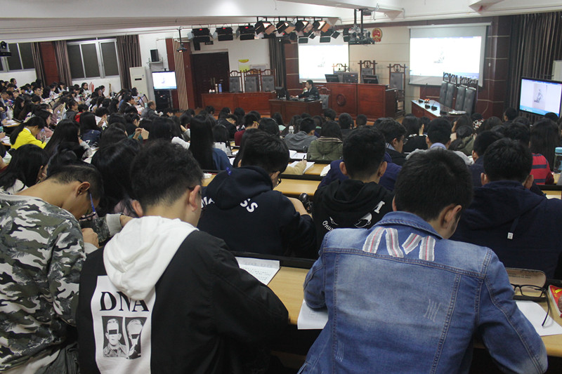 庄端副检察长先是通过浏览世界各地正义女神图片的方式为同学们讲解了正义女神的形象,提出了法律正义的重要性。再以幽默风趣的语言为同学们介绍了当今社会维护正义的“特殊”群体——律师。他通过2011年的“北海案”、2012年的“黎庆洪打黑案”等案例为在场同学们介绍了“特殊律师”的由来和发展。从掀起业界涟漪到撬动中国法治进程,特殊律师无论毁誉几何,都将是中国法治史上的重要一笔。