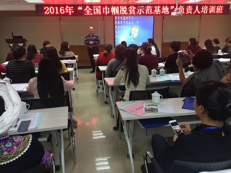 黄耀明教授为全国妇联主办的“巾帼脱贫基地负责人”培训班学员讲学。来自北京、广西、贵州、云南、湖南等省市的全国80多位巾帼脱贫全国示范基地负责人参加培训。