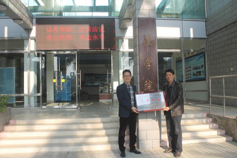 近日,法学与公共管理学院荣获“漳州市2011-2015年全市法治宣传教育先进集体”称号,受到漳州市依法治市领导小组办公室、中共漳州市委宣传部、漳州市司法局联合表彰。表彰仪式在法学与公共管理学院举行,漳州市司法局副局长郭龙庆、宣传科科长林成武,法学与公共管理学院院长何东平、徐继红副书记、黄姚明副院长参加了仪式。