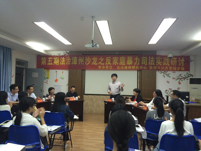 2016年11月17日晚,由法治漳州研究中心、法学与公共管理学院联合主办的第五期法治漳州沙龙在博中601教室举行。法学与公共管理院院长何东平教授出席沙龙。本次沙龙以“反家庭暴力司法实践”主题,邀请来自漳州市妇联副主席卢阿娜,漳州市检察院未检处处长、金融检察处处长郭荣龙,漳州市人民检察院民刑处处长黄国盛,漳州市中级人民法院少年庭庭长蔡惠珍,漳州市福利院院长谢俊波、漳州市委党校副教授庄建平、漳州市妇联权益部蔡秀碧共7位嘉宾参会。沙龙由漳州市检察院未检处处长、金融检察处处长郭荣龙主持。