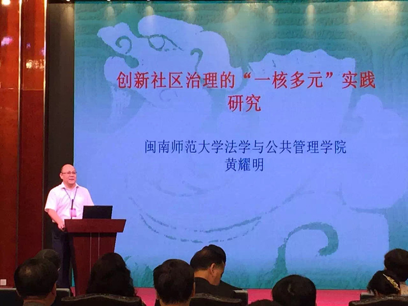 2016年6月10日,第八届海峡论坛·两岸社区服务恳谈会在厦门举行,来自海峡两岸的150名社区服务业界专家、学者围绕社区建设主题,聚焦社区服务创新、社区人文关怀和基层民众健康等内容。法学与公共管理学院副院长黄耀明副教授应邀参会,并做了题为《创新社区治理的“一核多元”实践研究》的专题报告。报告中,黄耀明副教授立足社区建设实践,阐述了社区治理理论、治理主体及其在社区治理中的作用、特点等内容,见解独到、言语幽默、案例翔实,得到了现场听众的一致肯定。