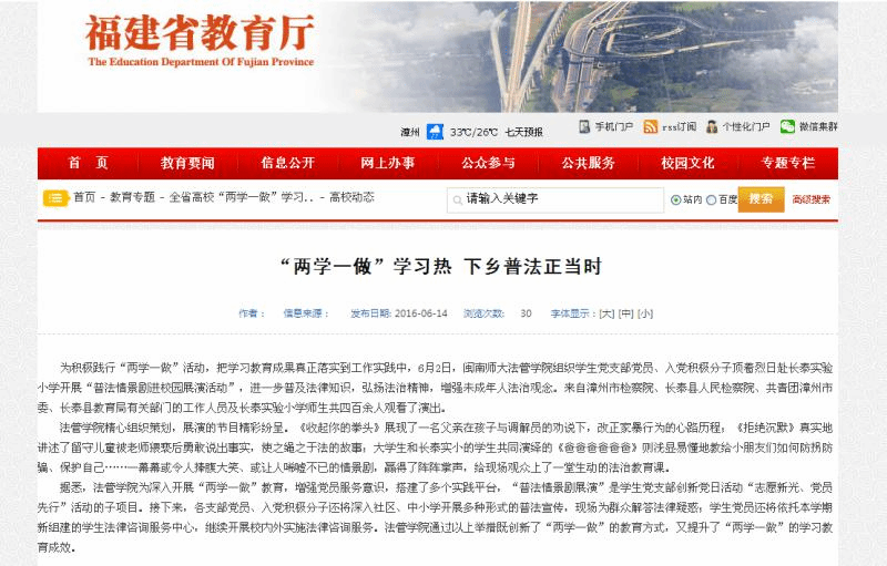 福建省教育厅网站报道风车动漫p 普法下乡践行“两学一做”学习教育