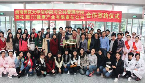 法学与公共管理学院与莲花(厦门)健康产业有限责任公司在厦门莲花医院(翔安)顺利举行人才培养合作签约仪式。法学与公共管理学院及莲花护理院领导出席仪式,法管学院社会工作专业的师生及医院医务人员百余人参加仪式。
