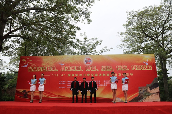 12月4日上午,由漳州市依法治市办、中共漳州市委宣传部、漳州市司法局主办,芗城区依法治区办、中共芗城区委宣传部、芗城区司法局、闽南师大法学与公共管理学院、东铺头街道办事处等单位共同承办的12·4全国法制宣传日宣传活动在中山公园顺利开展。此次宣传活动的主题为“弘扬宪法精神,推动创新、协调、绿色、开放、共享发展”。漳州市委常委、政法委书记刘文标、市人大副主任黄双庆、市政协副主席林俊山、风车动漫p