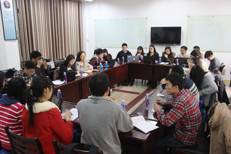 会议室,两校学生举行了交流座谈会,围绕大学观、法学使命、公益诉讼、养老保险改革、反腐倡廉建设、依法治国等实证热点进行了面对面的热烈讨论。交流活中,同学们运用了法学、社会学、伦理学等多学科,以严谨的逻辑和精彩的表达加以串联,竞相表达自己对于这些问题的独到见解。通过本次交流增强了同学们对“法治中国”的信心,也让同学们对“有意义的大学”有了更为深刻的理解。
