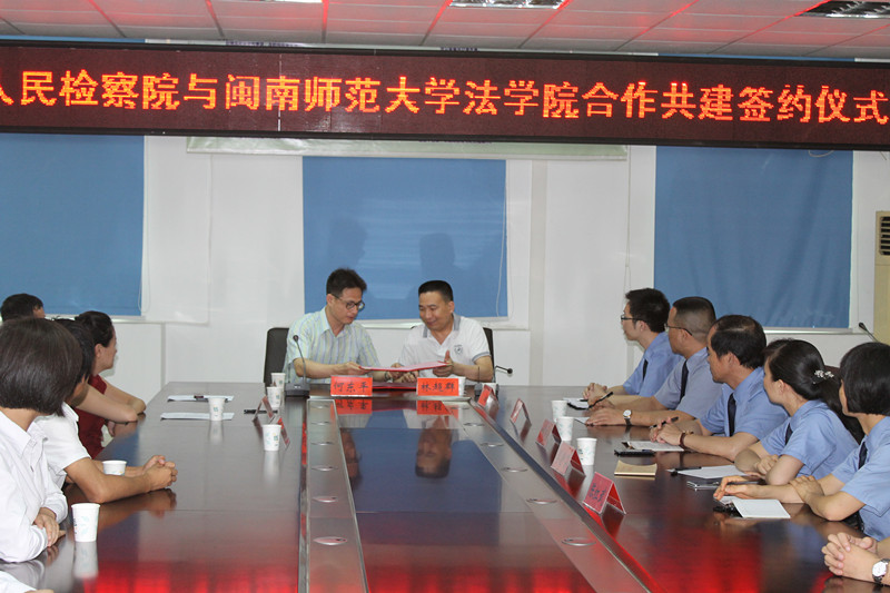 副院长何东平教授一行共7人赴平和县人民检察院,就教学、科研合作事宜与平和县人民检察院林超群检察长进行了友好交流,签署了共建协议书,并共同为教学实践基地揭牌。