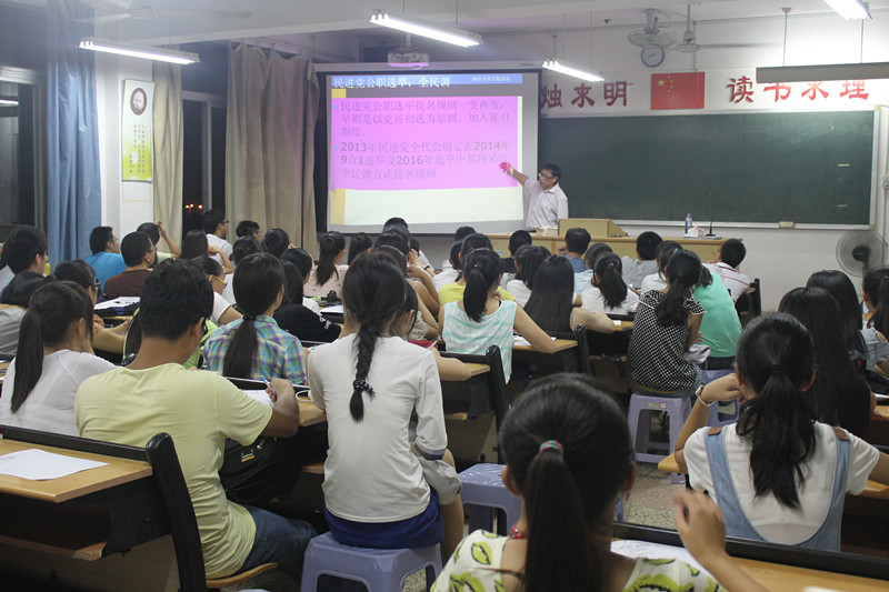 讲座中,陈先才副教授立足海峡两岸实际,深刻对比台湾政治转型前后的政党体制,分析蓝绿两政党的构成与实力,剖析台湾国民党与其他政党的组织结构、社会基层和选举类型,并对海峡两岸关系和平发展做出了预判。整场讲座,陈教授引用大量社会实例,语言幽默生动,见解独特新颖,赢得现场掌声阵阵。讲座后陈先才副教授还与师生进行了互动交流。