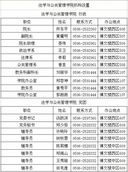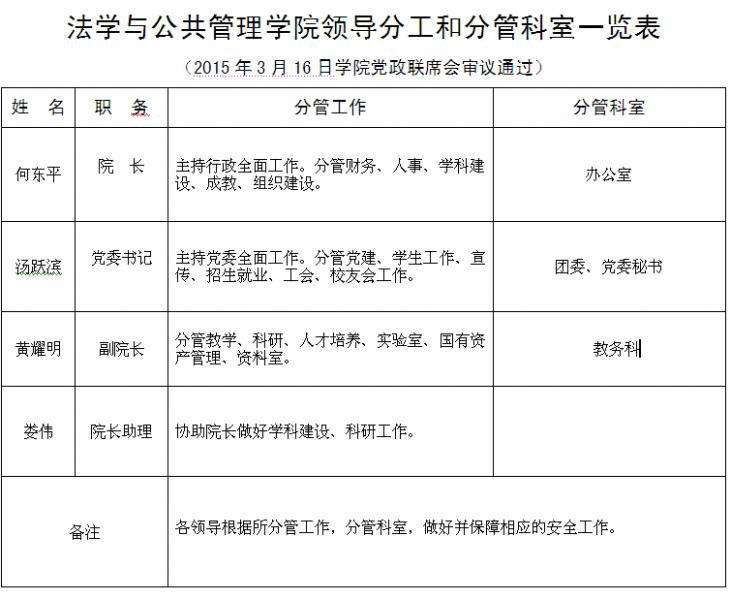 法学与公共管理学院机构设置及领导分工