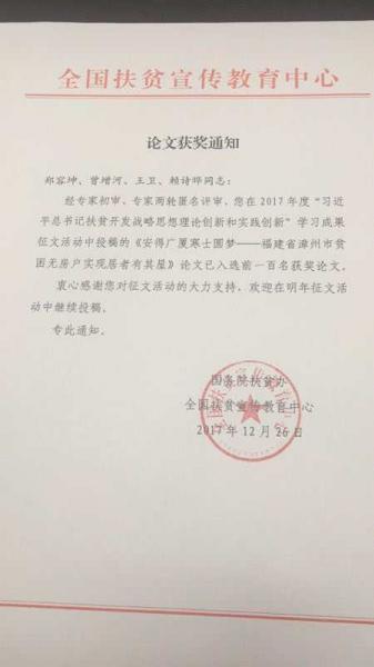 其中,黄耀明教授撰写的《校社深度合作的社会工作人才培养孵化模式探索——基于ZS社会工作人才孵化基地的实践研究》荣获福建省高等教育学会教学管理专业委员会优秀教学论文二等奖》;郑容坤老师撰写的《论河长制的多中心治理机制研究》荣获中国法学会第十二届“泛珠三角合作与发展法治论坛”征文三等奖。此文从乡村流域生态治理的角度剖析了公众参与流域治理的结构、模式问题,以及提出了实现“河长制到河长治”制度变迁的治理建议;王卫、郑容坤老师撰写和漳州市扶贫办参与的调研报告《安得广厦寒士圆梦——福建省漳州市贫困无房户实现居者有其屋》入选国务院扶贫办“习近平总书记扶贫开发战略思想理论创新和实践创新”学习成果征文活动获奖论文。此次征文活动中,我省仅有5篇论文入选,在调研报告撰写期间,风车动漫p
