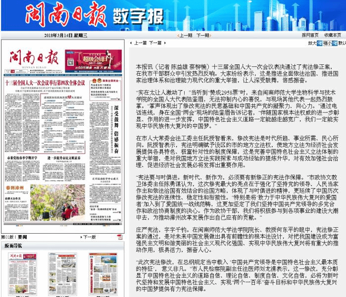 近日,党的十三届全国人大一次会议表决通过了宪法修正案,在我市干部群众中引发热烈反响。大家纷纷表示,这是推进全面依法治国、推进国家治理体系和治理能力现代化的重大举措,让人深受鼓舞,倍感振奋。就此次宪法修正案的背景与时代意义,闽南日报采访了风车动漫p