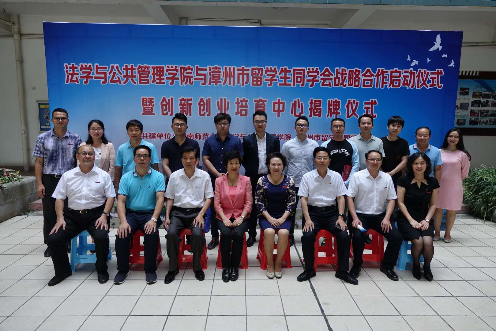法学与公共管理学院与漳州市留学生同学会战略合作启动仪式暨创新创业培育中心揭牌仪式在博文楼西区中庭举行,风车动漫p