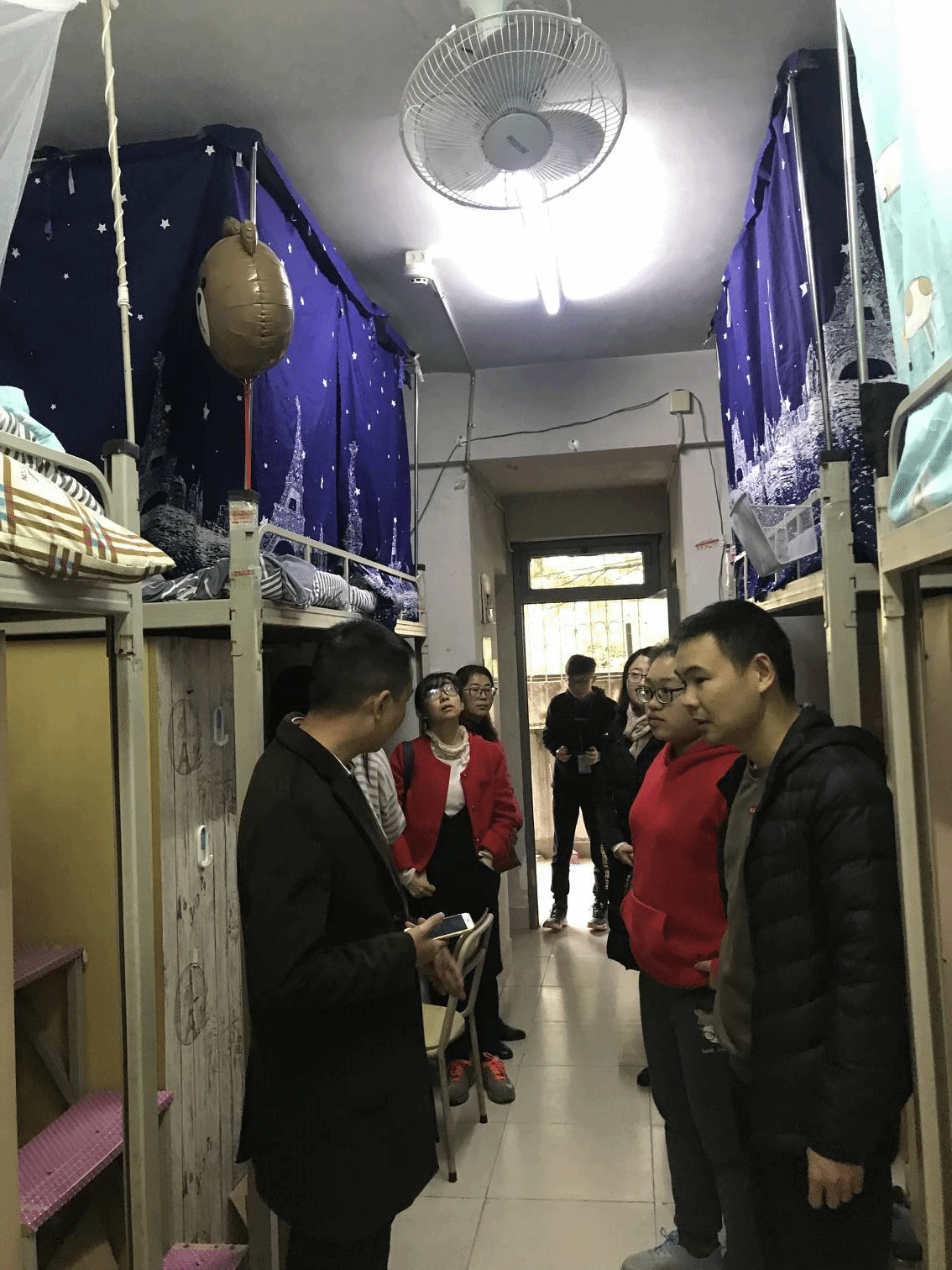 同时,老师们还现场查看宿舍可能存在的安全隐患,督促学生一定要把消防安全放在首位,任何时候都不能松懈,防微杜渐,杜绝在宿舍使用违规电器,做好宿舍卫生。同时要求同学们做好团结和睦相处,互帮互助,及时化解宿舍矛盾,努力营造一个安全,文明,舒适的学习生活环境。