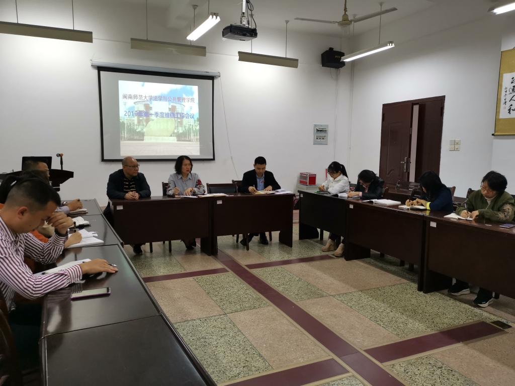 在博文楼西区106召开2019年第一季度维稳工作会议。学院党委书记徐继红、学院副院长黄耀明、学院党委副书记潘艺阳和全体行政人员及辅导员参加了会议。