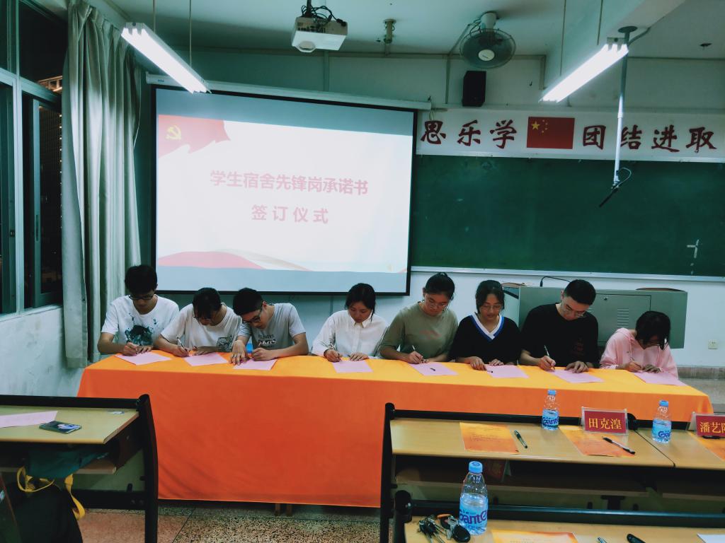 在挂牌仪式现场,面对鲜红的党旗,进行了庄严的宣誓仪式。学生党员标杆宿舍代表、学生干部示范宿舍代表、标兵宿舍代表依次上台发言,就如何发挥先锋模范作用谈体会、表决心,做规划。随后举行了“党员标杆宿舍”、“学生干部示范宿舍”、“标兵宿舍”授牌仪式,学生代表们签署《宿舍先锋岗承诺书》,承诺以身为范、以行为规,引导身边同学自我教育、自我管理、自我服务、自我成长。