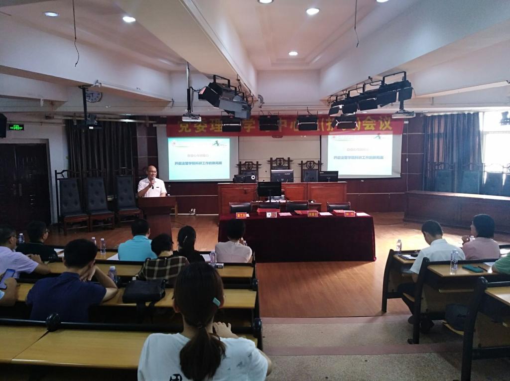 副院长黄耀明作题为《自信心与进取心,打开法管学院科研建设的新局面》的科研工作部署。黄耀明指出,新学期科研工作要增强自信心和进取心,争取三年内达到人人做科研,人人有课题的目标,并提出实施科研攻坚计划,推进老师科研三年(2019-2021)清零行动的具体措施,包括建立科研创新团队,开设科研创新沙龙,支持青年老师将参与横向课题转化为校内课题,推荐优秀论文及学术成果发表专栏,争取建言献策受到批示及成果转化等。