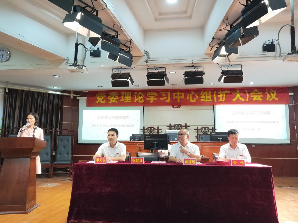 在博文楼梯教二召开党委理论学习中心组(扩大)学习会暨2019年务虚会。全院教职工参加会议。会议由院党委副书记潘艺阳主持。