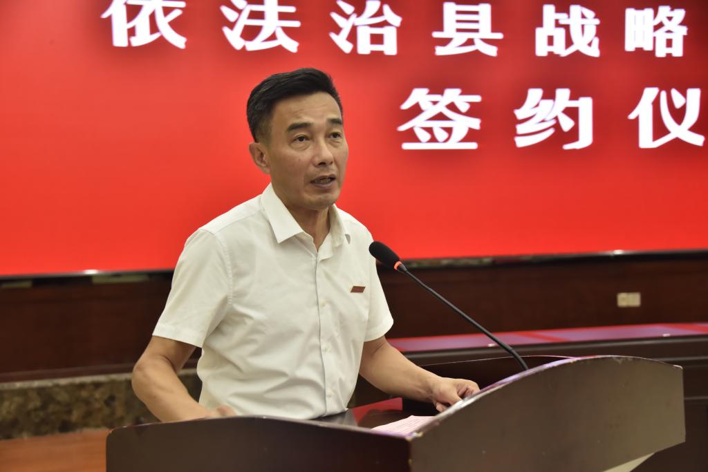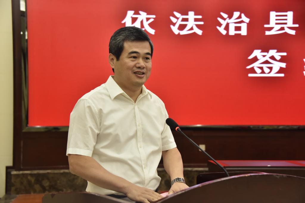 与南靖县人民政府在南靖县视频会议中心签订依法治县战略合作协议。南靖县县委书记黄劲武、县长钟科,风车动漫p