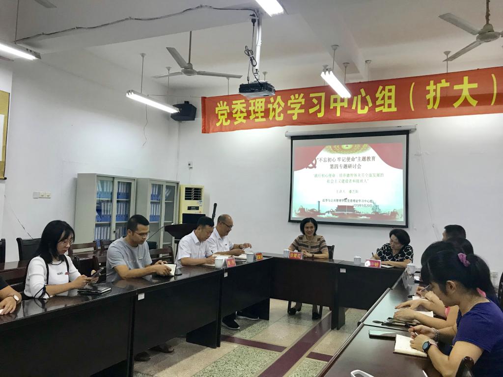 9月20日下午,法管学院党委领导班子围绕“践行初心使命,培养德智体美劳全面发展的社会主义建设者和接班人”进行了集中学习研讨,校党委委员蒋一婷副校长莅临指导,学院副科级以上干部、部分支部书记、辅导员列席会议。