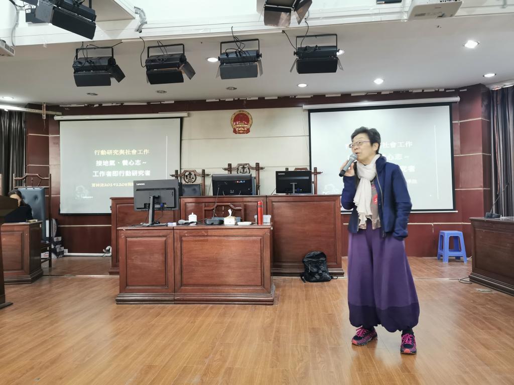 夏林清老师从自身的教育和从业经历出发,认为在社会各个领域发挥作用的社会工作需要接地气,在群众中工作,又需要面对日新月异的社会环境,称之为“顶天立地”。而从事社会工作服务的社会工作者都是行动研究者,做社工也好老师也罢,都需要成为有意识的行动者,对经验要能从知觉、觉察、一路提升到清醒、觉醒的程度,使意识得以清晰,内外不搅合在一起,在内部过去的经验和环境的互动中,不轻率下判断,对行动中人与社会情境的关系有清晰的辨认,进行反映性的探究,以提高行动的品质。引用杜威的话说就是“行动研究是社会情境的研究,是以改善社会情境中行动品质的角度来进行研究的研究取向”。在如何运用自己的行动改变他人与环境的议题中,夏林清老师认为社工不仅需要理论的学习,同时需要去实践,积累实践的经验,在微观介入的同时也需要关注到宏观层面的问题,因为“制度是人为的”。