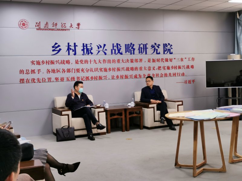为推进乡村振兴战略深入实施,3月31日上午,漳州市人民政府副市长谢毅泰一行来校调研,校党委书记吴彬镪在乡村振兴战略研究院会见了来宾并座谈。漳州市政府办、漳州市农业农村局等部门领导和相关工作人员,学校办公室、法学与公共管理学院、商学院等相关部门领导和教师参加了调研座谈。